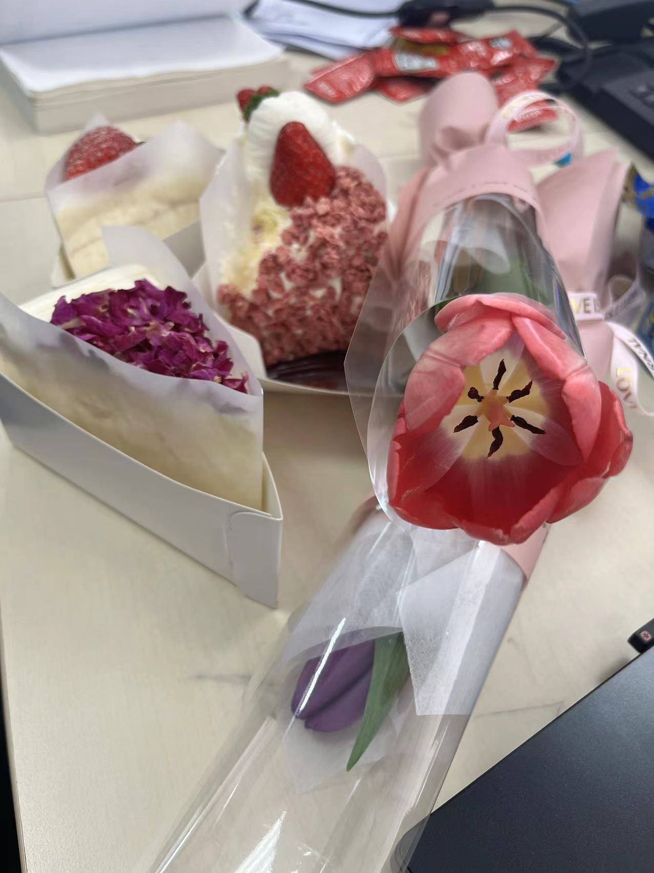 ? ??美麗的花束為女職工們送上了濃濃的節(jié)日祝福和問候,甜美的蛋糕更讓女職工感受到了節(jié)日的甜蜜和世源工會的溫暖。